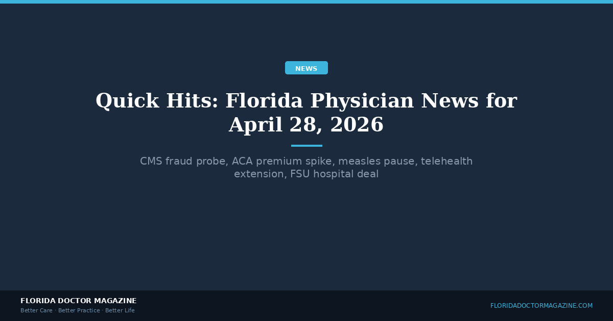 CMS Administrator Dr. Mehmet Oz identified Florida as a “hot spot” for healthcare billing fraud in a March 2026 letter to state officials. The inquiry is part of a multi-state federal crackdown and requests details on Florida’s fraud detection and prevention mechanisms. Florida physicians should ensure billing documentation is thorough and accurate.