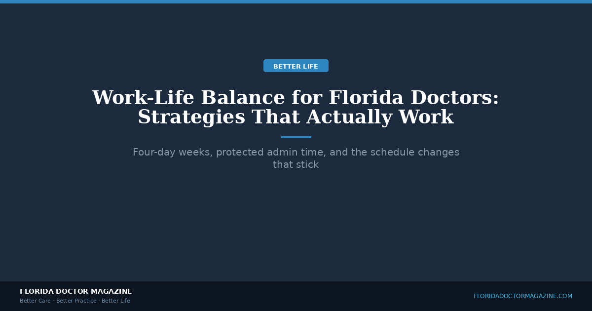 - Propose a four-day pilot. If you’re employed, draft a one-page proposal for your medical director. Include the AAPPR data on physician retention and the replacement cost figures. Frame it as a recruitment advantage in Florida’s competitive market.